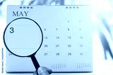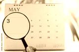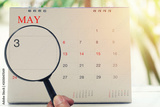 Magnifying glass in hand on calendar you can look third day of month,Focus number three in May.