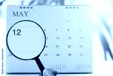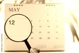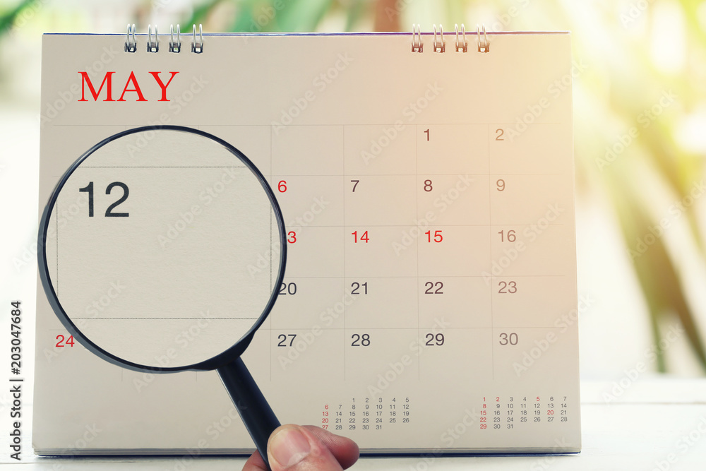 Magnifying glass in hand on calendar you can look twelfth day of month,Focus number twelve in May.