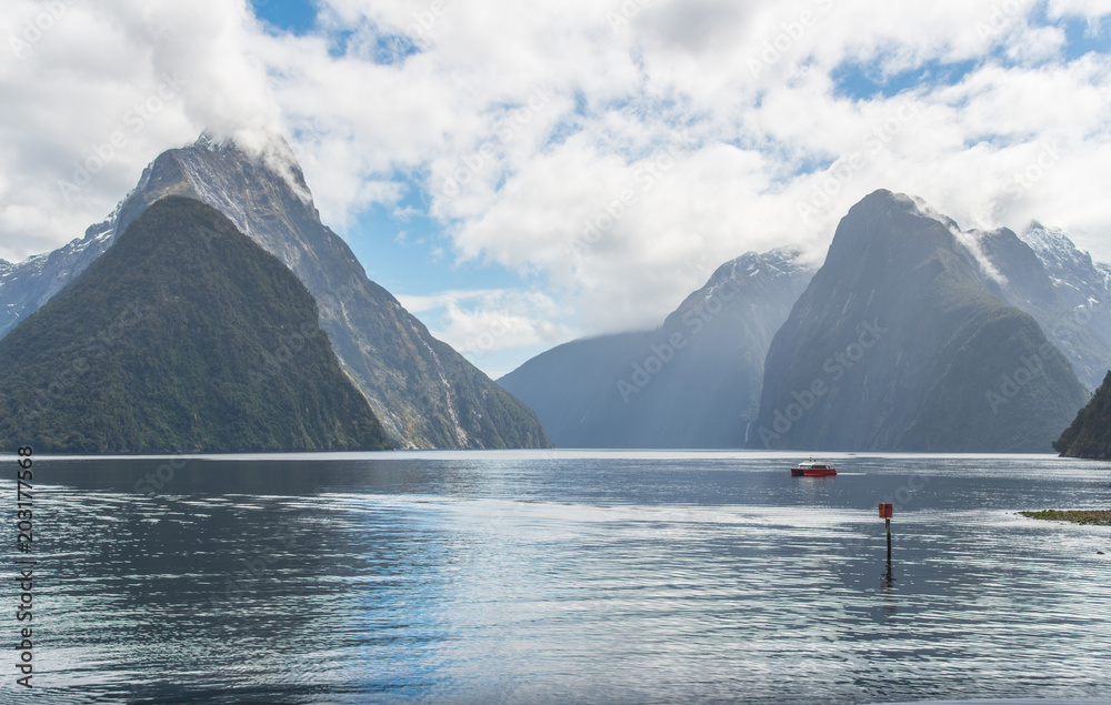 The scenery view of Milford Sound, New Zealand's most spectacular natural attraction in south island of New Zealand.