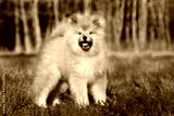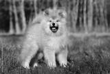 fluffy japanese akita puppy standing outdoors