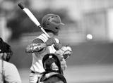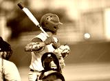 Baseball player swinging at the ball