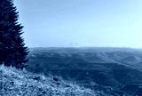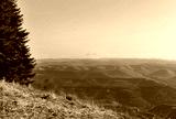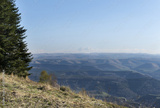view of mountain valley, mount Elbrus on the horizon, North Caucasus