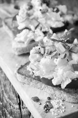 Scrambled eggs on two pieces of toast with green onion and tomatoes