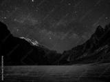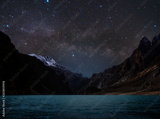 Night Landscape, Silhouette mountain with water on lake and sky full of star with milky way