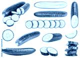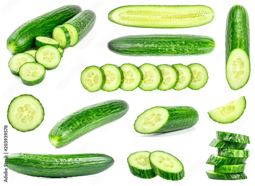 Collection of fresh green cucumbers isolated on white