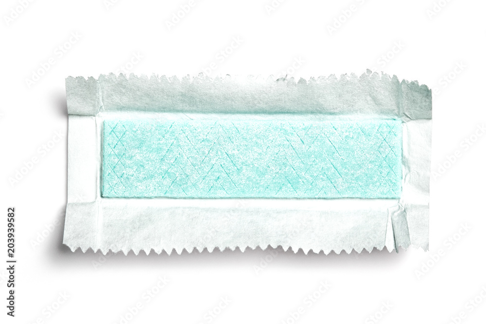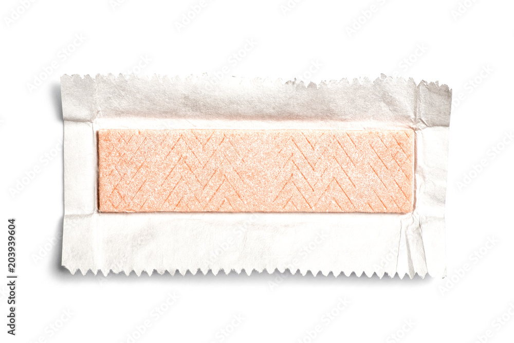 Top view of unwrapped chewing gum on white background