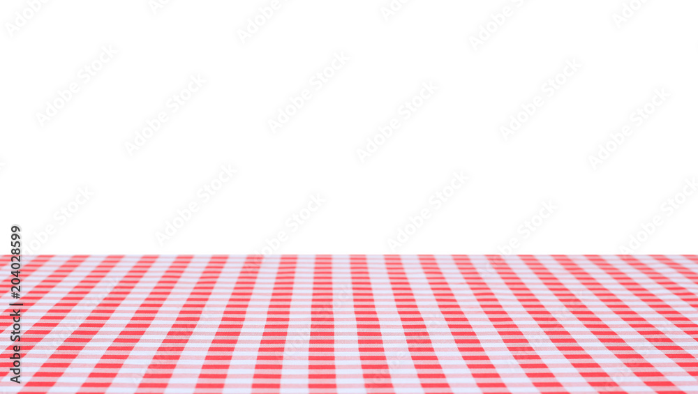 Red classic checkered tablecloth on white background with copy space
