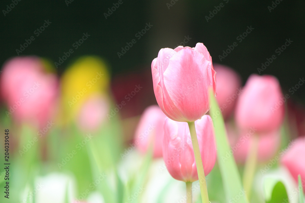 Tulip flower with green leaf