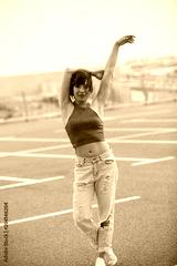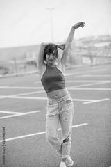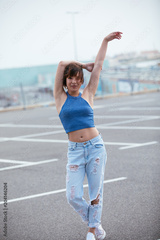Portrait of hard fashion young Asian girl in a parking in the city. Lifestyle concept