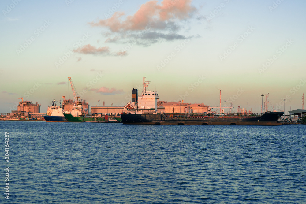 Logistics and transportation of offshore oil and gas industry, ships at port.