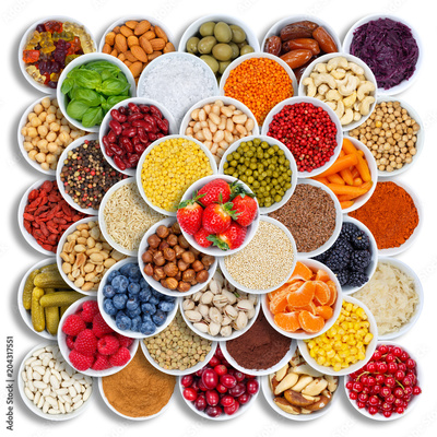 Früchte Beeren Gemüse Obst Nüsse Gewürze Zutaten von oben