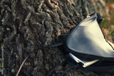 A portable charger charges the smartphone. Power Bank with cable in the case