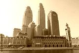 Cityscape of Tianjin, China. The word on the building is: Jinwan Plaza.