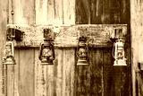 lantern on abstract wooden background.