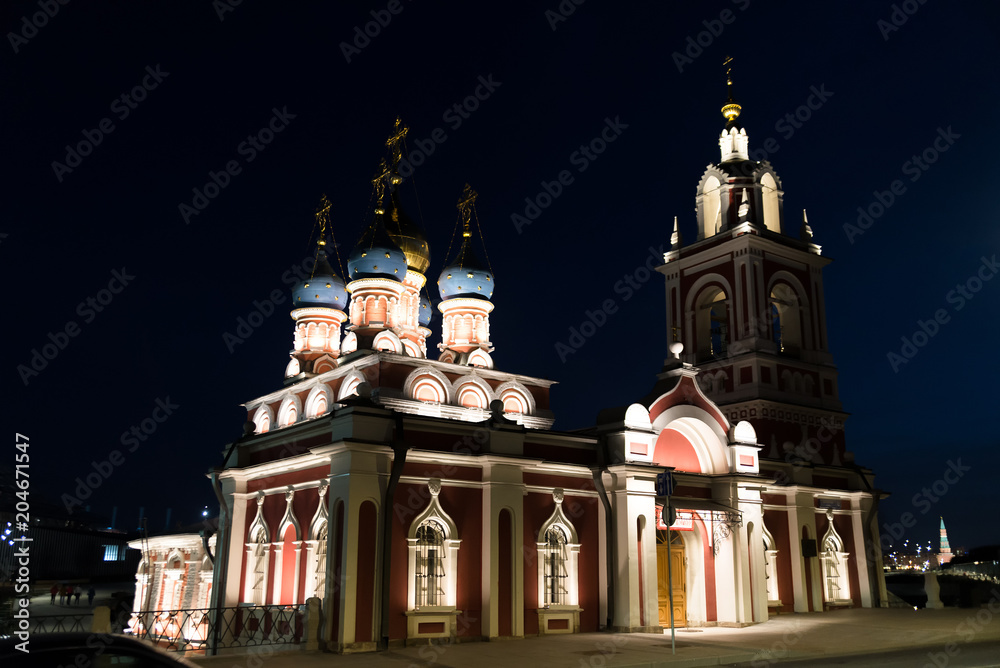 Church of St. George on Pskov hill in Moscow at night.