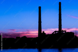 The evening thermal power station on the Neva river embankment in Saint Petersburg, Russia