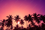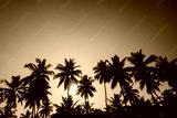 Tropical sunset coconut palm trees silhouettes