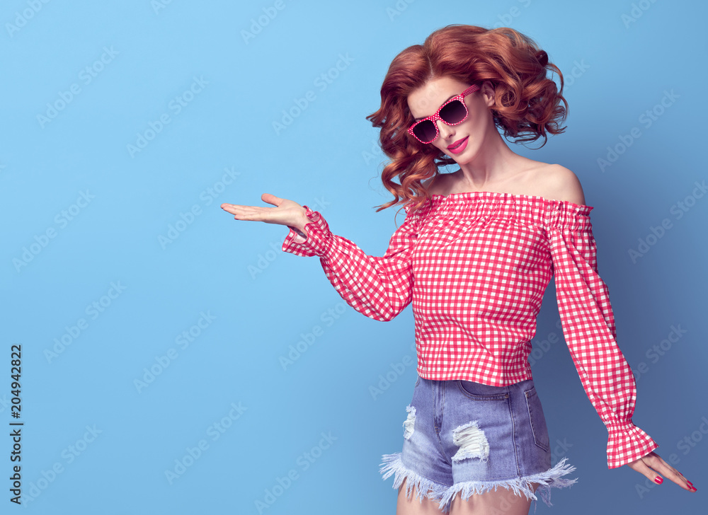 Fashion Young Pretty Redhead PinUp Girl Having Fun