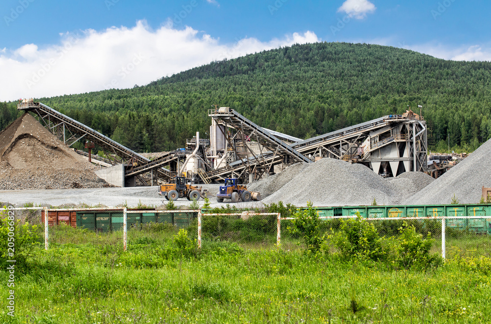 Open pit mining and processing plant for crushed stone, sand and gravel to be used in the roads and construction industry