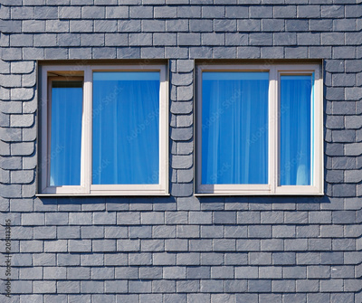 the wall of the house is decorated with tiles of black Silesian slate