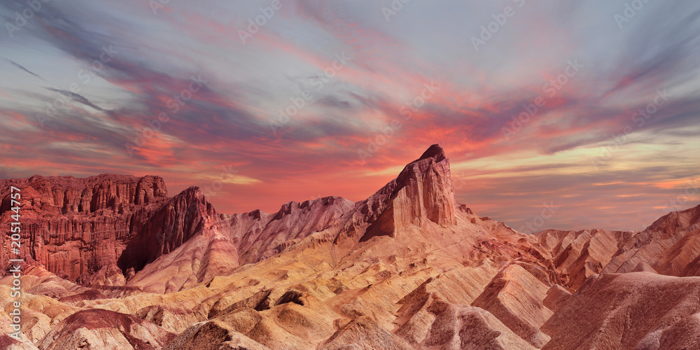 Panorama of the Backside of Zabriski Point Death Valley at Sunset