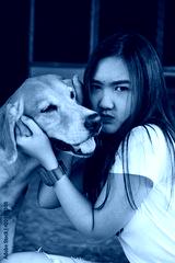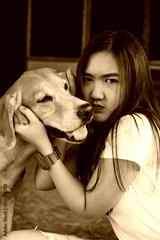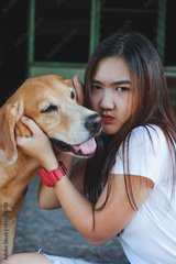 Young women playing with a dog ,life style .