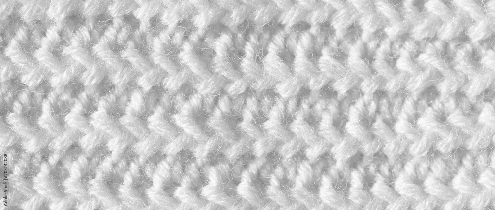 Knitting from woolen threads. Texture for the New Year's postcard. White background for various purposes.