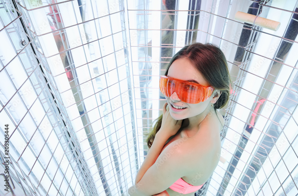 pretty girl on the background of the device for the treatment of light. phototherapy