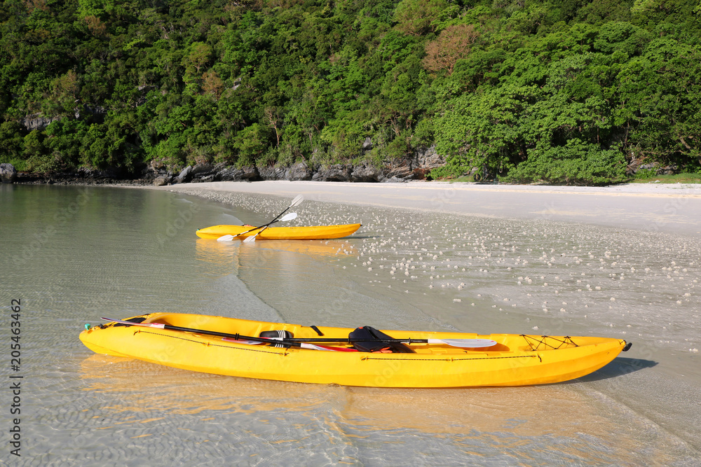 Kayaking on the white sand beach at limestone island