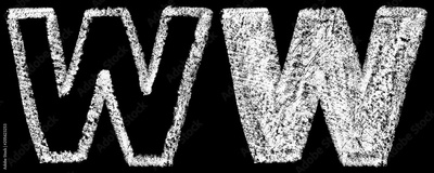 handwritten white chalk english letters W isolated on black background, hand-drawn chalk lettering, stock illustration