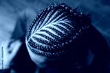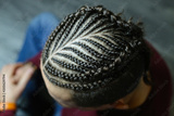 men's hairstyle from thin braids, creative waves of hair on the head of a man, head close-up, hair, creative shaving, Iroquois, top view