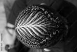 The back of a man braided into thin braids, a creative hairstyle, a hair artist, Man's hairdress on top