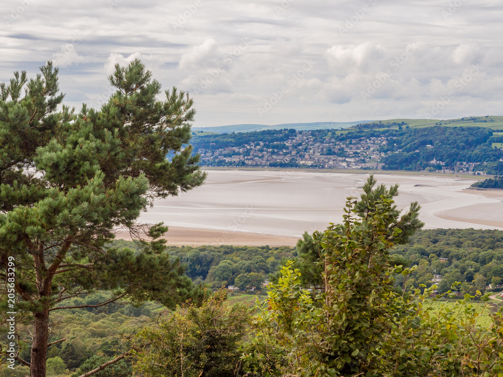 View from the top of Arnside Knot to the coastline at Arnside, Lancashire, UK