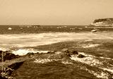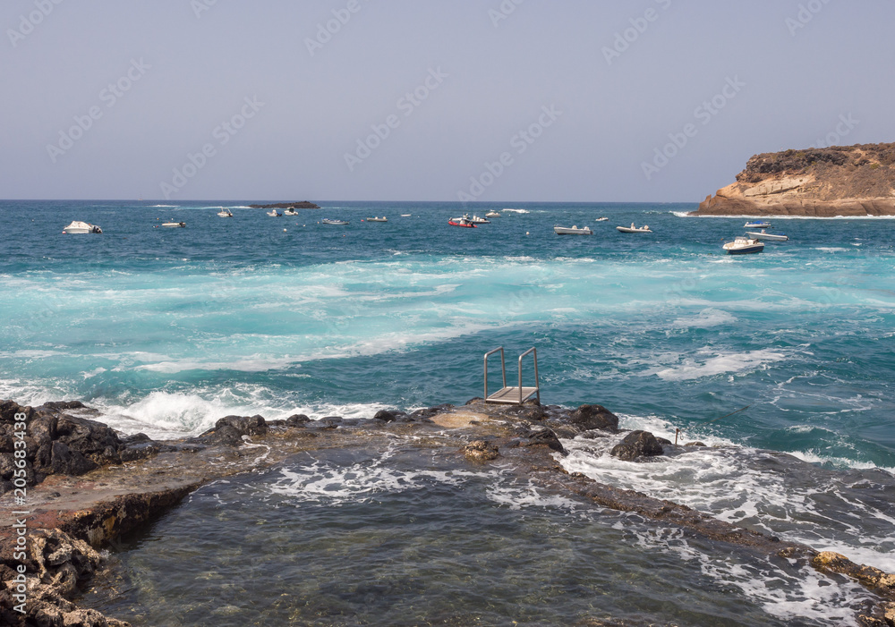 Blue sea waves crashing on the shore at Playa de la Enramada in Teneriffe, Spain EU