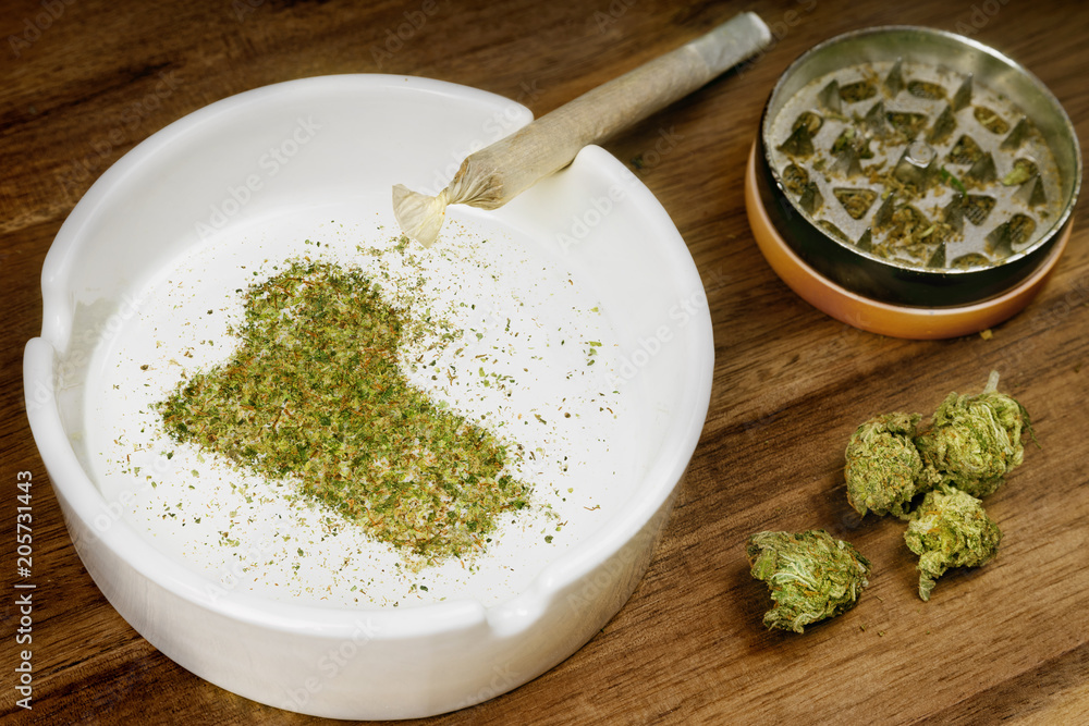 Ground weed in the shape of Iraq with a joint. (series)