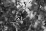 Close up view of Red hibiscus flower or shoe flower on green leaves bokeh background. Tropical garden.