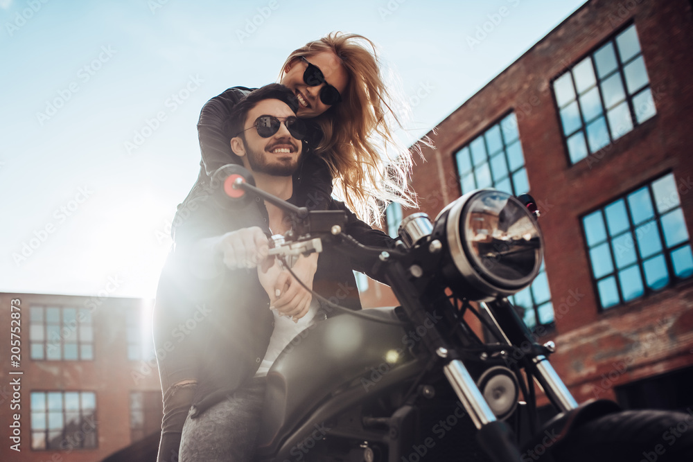 Romantic couple with motorcycle