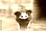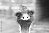 Ostrich head with large eyes close-up