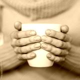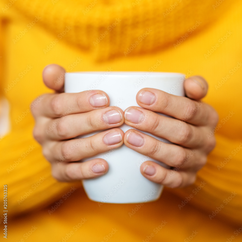 Cup of hot tea in your hands. Square. Beverage concept, lifestyle, autum
