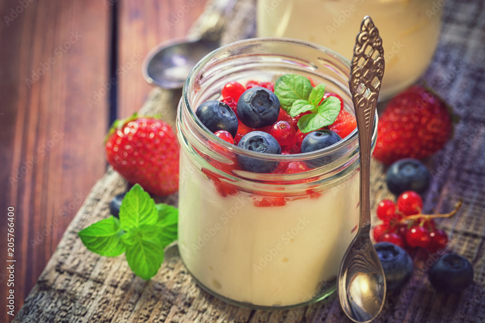 Homemade Vanilla Parfait With Berry Fruit And Mint