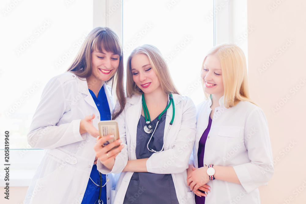 Life after death. three female young doctors pediatricians having fun with a tablet computer during a break watching a photo of a rescued patient.