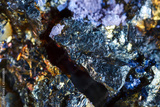 Macro shooting of natural gemstone. The raw mineral is chalcopyrite .