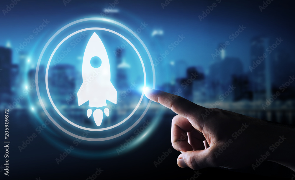 Businessman using startup digital interface 3D rendering