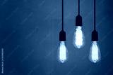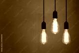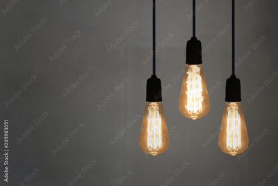 Vintage lamps in a restaurant on Gray wall background.