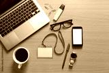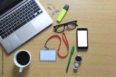 Working desk with work equipment and have copy space.
