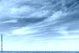 Beautiful blue sky over the sea with translucent, white, Cirrus clouds