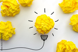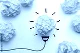 Creative idea, Inspiration, New idea and Innovation concept with Crumpled Paper light bulb on white background.