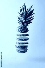 close up view of cut ripe pineapple exotic fruit isolated on yellow