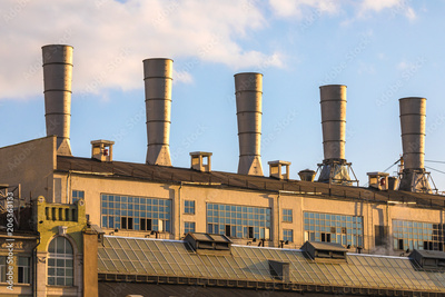 View on the roof with the tubes of thermal power station in the center of the Moscow Russia near the red square