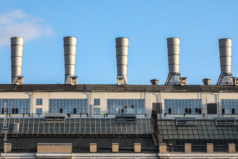 View on the roof with the tubes of thermal power station in the center of the Moscow Russia near the red square